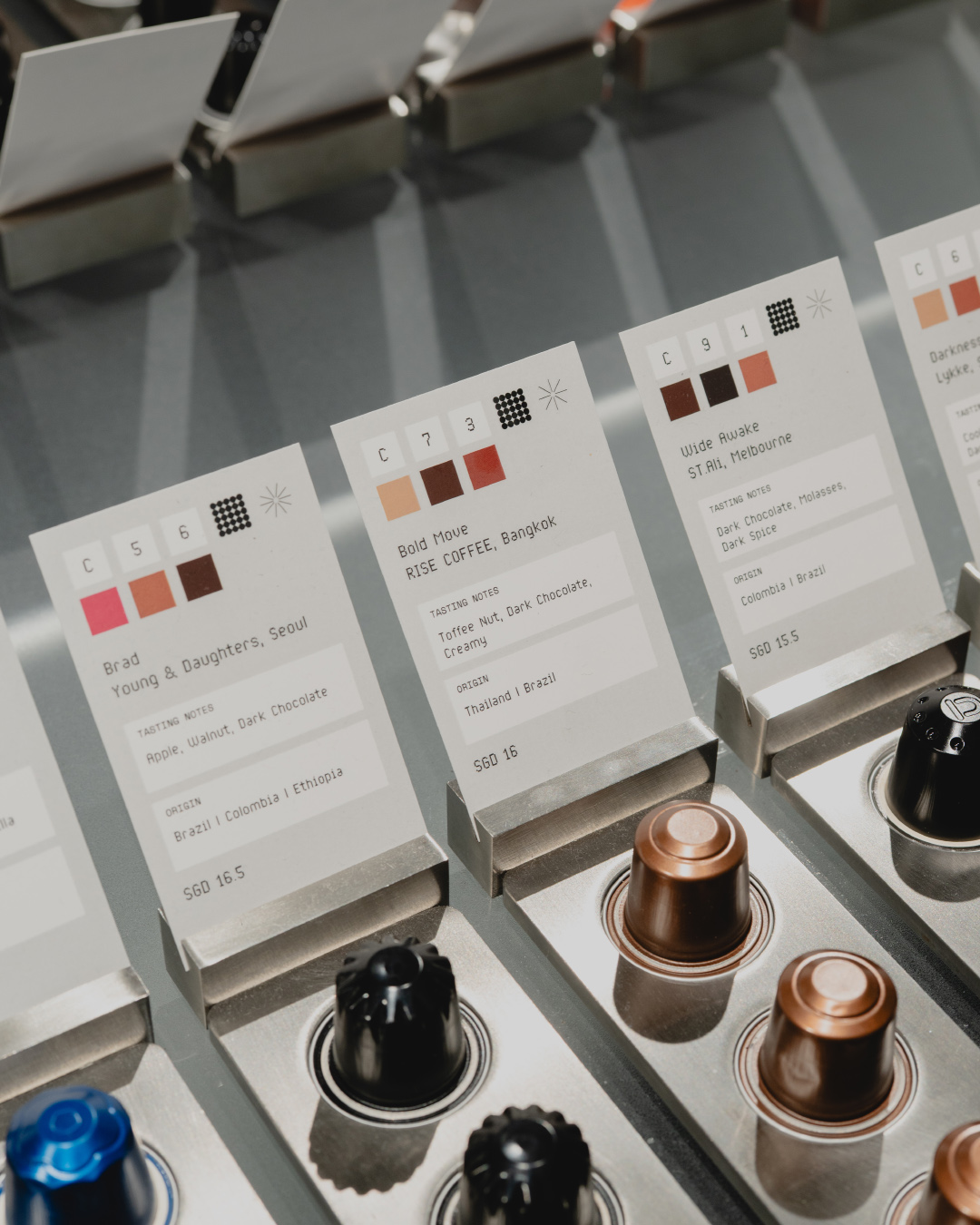At the new store, visitors can experience the MORNING Index, a unique flavour-based system that organises coffee capsules by taste profile rather than brand or origin. Inspired by the official coffee taster’s flavour wheel, this design-led concept helps customers discover their preferred flavour notes — whether bright and fruity, rich and chocolatey, or smooth and creamy. The display transforms coffee shopping into a sensory experience, making it simple and intuitive for anyone to find their perfect cup.